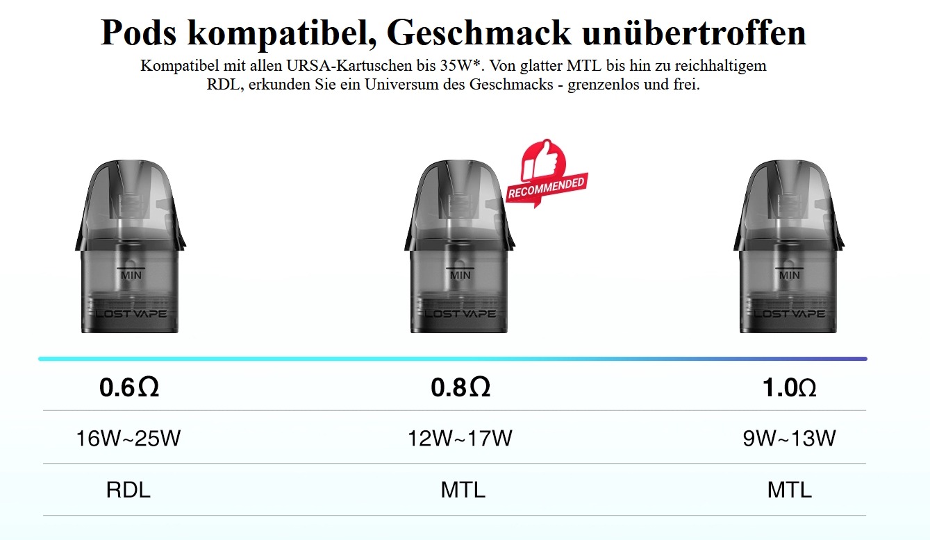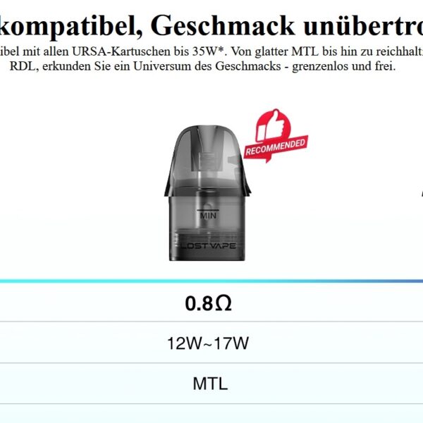 - 1× Ursa V3 Pod 0,8 Ohm (MTL, vorinstalliert)